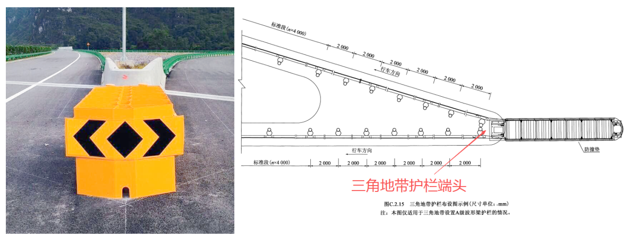 交通分流处三角地带波形梁护栏的端头处理,应符合下列规定:
