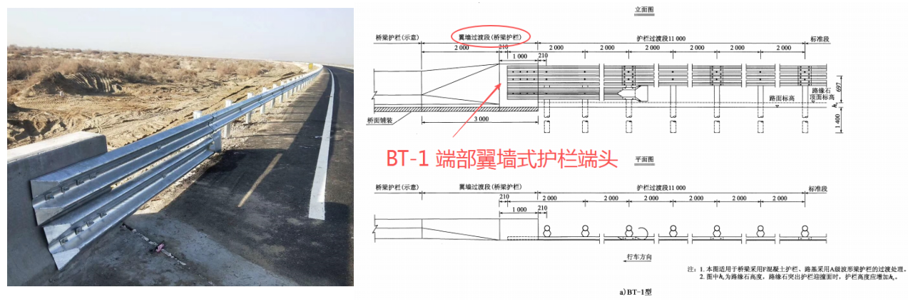 BT-1混凝土护栏与波形护栏过渡段——端部翼墙式:
