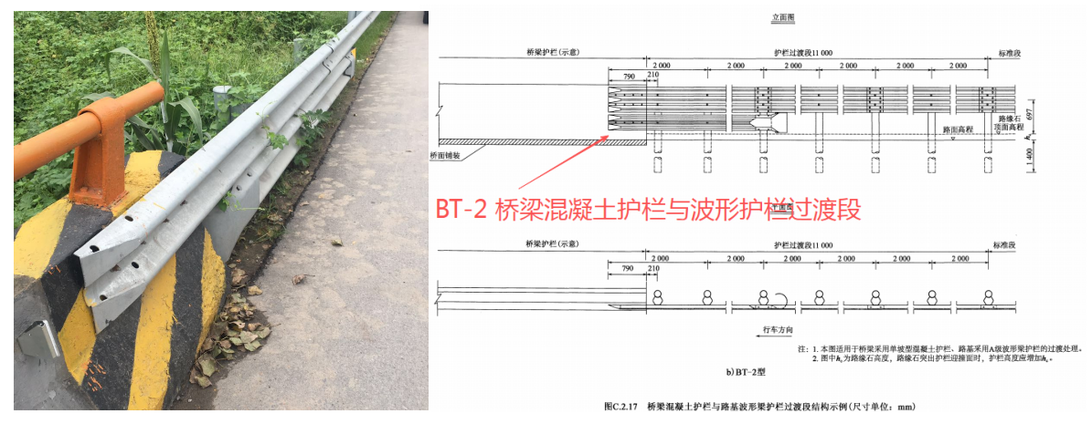 BT-2混凝土护栏与波形护栏过渡段——搭接式: