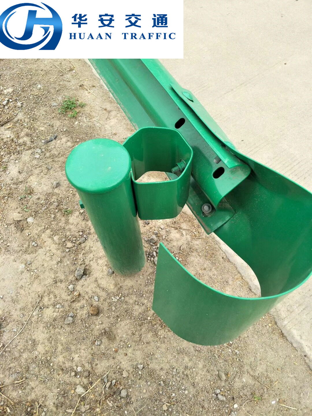 然后就是高速公路护栏板安装时用的立柱了,同样的道理,立柱同样也是用半钢性的材质做成的,当其受到外界的冲击力时,在压力的迫使下就会放生变形,从而吸收来自外界的冲击力减轻由于碰撞所带来的损失。