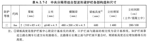 中央分隔带波形梁护栏从构造上可分为分设型和组合型两种。中央分隔带宽度大于或等于2m,中央分隔带内构造物较多,或在中央分隔带下埋设有管线的路段,可采用分设型护栏;中央分隔带宽度小于2m,中央分隔带内构造物不多或埋设管线较少的路段,可采用组合型护栏。