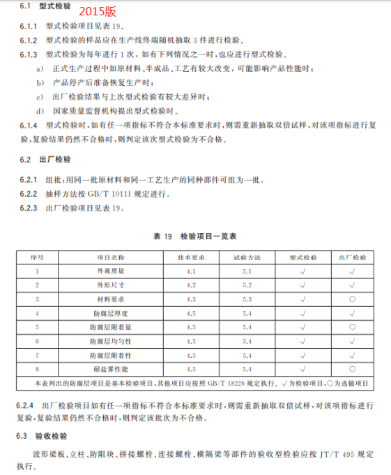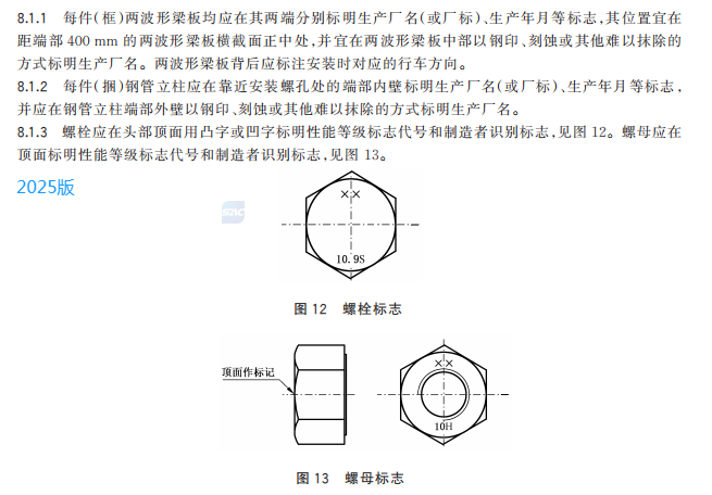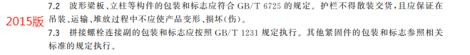 z) 更改了钢管立柱、两波形梁板、螺栓和螺母的标志方法(见 8.1.2、8.1.3,2015 年版的 7.2、7.3)。