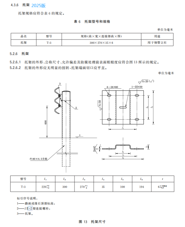 i) 增加了托架的用途、规格、尺寸和允许公差要求(见4.3.6、5.2.6);