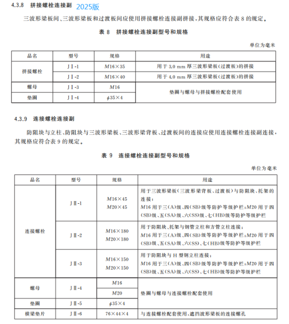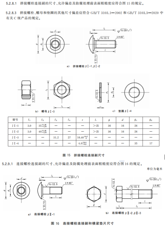 j) 更改了拼接螺栓连接副和连接螺栓连接副的用途、规格、公称尺寸及允许偏差(见4.3.8、4.3.9、5.2.8.1、5.2.8.3、5.2.9.1和5.2.9.3,2015年版的3.3.8、3.3.9、4.2.8.1和4.2.9.1);