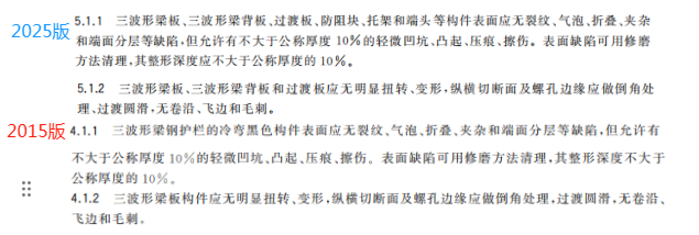 l) 增加了三波形梁板、加强横梁和立柱不应焊接加长的要求(见5.1.4);