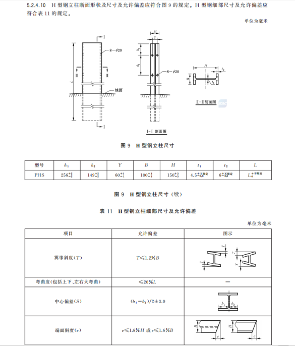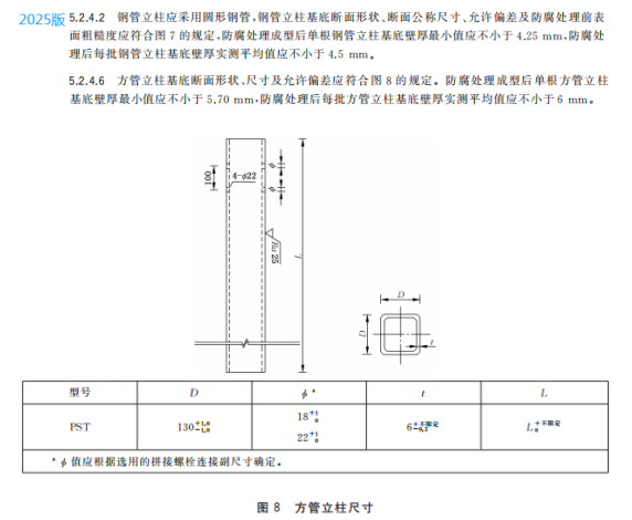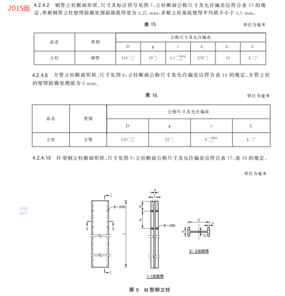 n) 更改了钢管立柱、方管立柱和 H 型钢立柱的尺寸要求(见5.2.4.2、5.2.4.6、5.2.4.10,2015年版4.2.4.2、4.2.4.6和4.2.4.10);