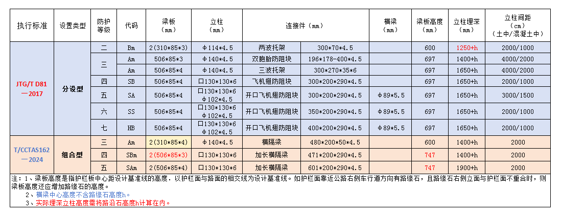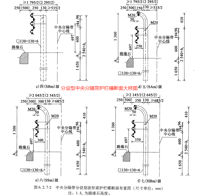 在不同类型的中分带护栏规格尺寸中也给出了明确的要求:
