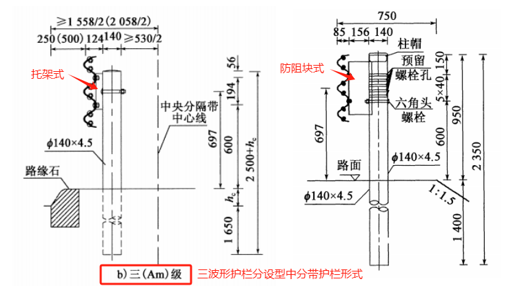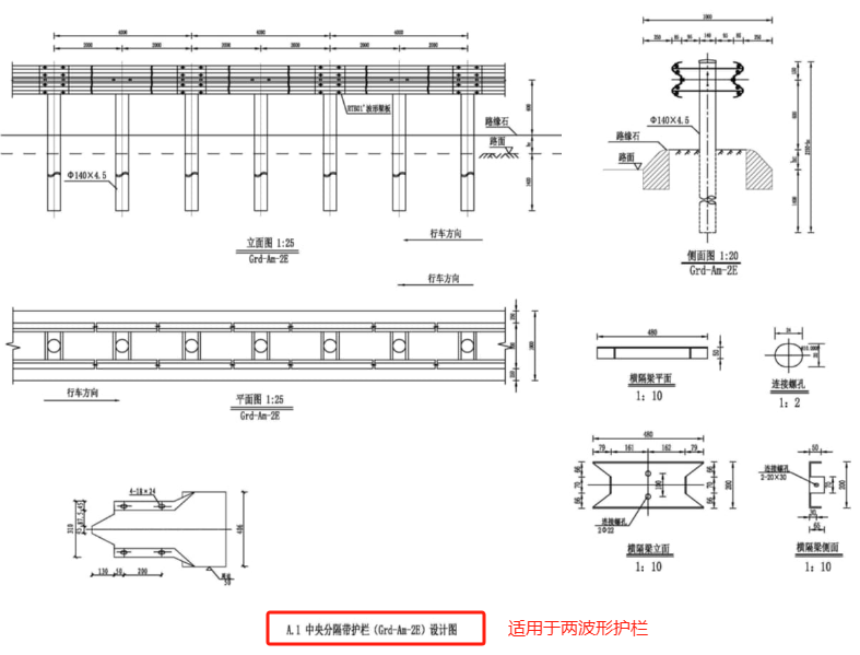☝ 两波形Am级组合型中央分隔带波形护栏
