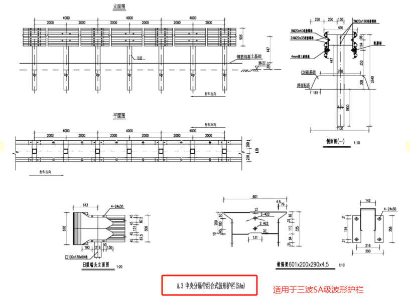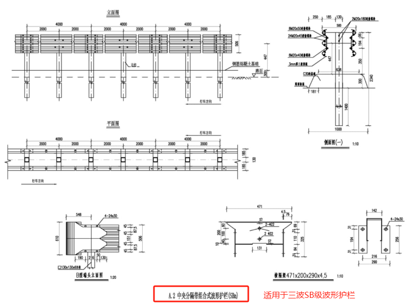 ☝ 三波形SBm级分设型中央分隔带波形护栏