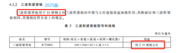 1、更改了产品组成,可以看到产品组成内横隔梁替换成了托架,三波背板的使用该范围也仅限于H型立柱中,在常规的A级、SB级、SA级、SS级等三波护栏中不再使用,安装时也便捷了很多。