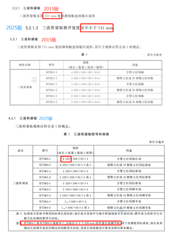 与GB/T 31439.2—2015版标准相比,2025版三波形护栏新标准修改比较显著的几点: